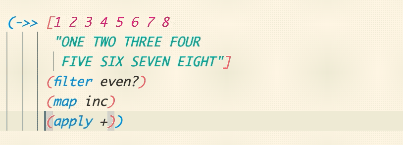 Select Top Level Form | Top level in a structural sense. Typically where your(def ...)/(defn ...) type forms. Please note that(comment ...) forms create a new top level. ![]() |